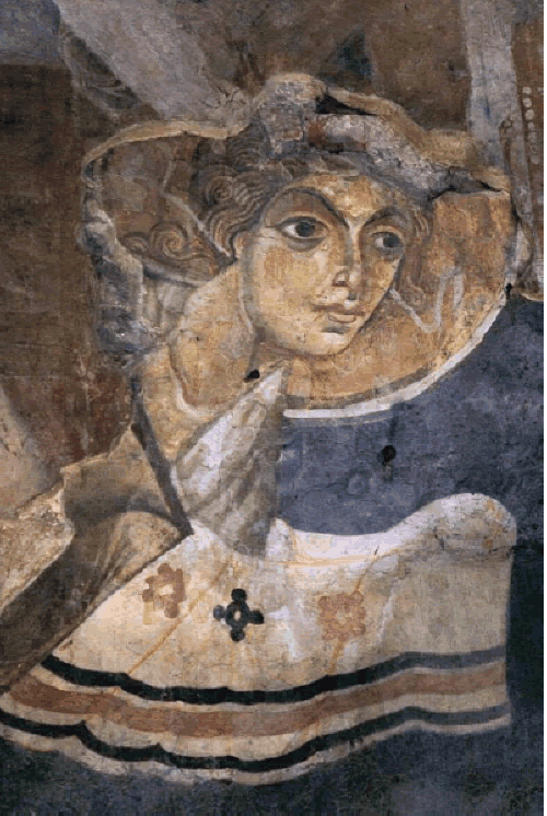 Много бъркаш, приятелю. Константинополската живопис не е статична, а има поне три или четири периода. Боянската църква е много новаторска в сравнение с Комниновата живопис (крипта на Бачковски манастир), но си е напълно в духа на високата столична живопис от епохата, която носи всички черти, които си описал. Откъде го знаем - ами ти сам каза, че за да се определи един стил трябва да се гледа не само контура, художественото изображение и итн, а и историческия и най-вече религиозен контекст и послания. Ако се опитваш да кажеш, бе Бояна е нещо едва ли не самобитно, дълбоко грешиш. Тя е доста традиционна живопис от гледна точка на редица самобитно български богословски мотиви, които тук просто липсват. А тези мотиви - без значение как са изобразени - са например крилатият Свети Йоан Кръстител, крилатата Света Богородица, кучеглавият Свети Христофор. Всички тези сцени са изобразени напълно традиционно в Бояна, точно така, както е в духа на класическата византийска живопис от епохата. Византийската живопис изобщо не е гротескна. Тя е абстрактна, сакрална, не отразява реалността, а с художествени средства предава богословски понятия, нещо, което западната не прави. Ето ти пример за ефирна, силно изразителна и жива композиция, рисувана поне 300 години преди Бояна.