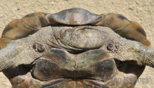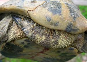 4. Доста време мина, от както последно беше представено българско влечуго. Не че останаха много - до тук не са споменати костенурките, от кото в България се срещата четери вида, а за два има спорадични сведения като случайни гости. И така започване със сухозените видове, ще представим и водните и накрая ще споменен и морските обитатели. Започвам с сем. Сухоземни костенурки /Testudinidae/: Шипоопашатата костенурка /Testudo hermanni/ е вид костенурка, един от четирите европейски представителя на семейството на Сухоземните костенурки /Testudinidae/. Достига до 3-4 kg тегло (източния подвид е по-едър) и 28 cm дължина. Шипоопашатата костенурка се среща в Южна Европа - Пиренейския, Апенинския и Балканския полуостров (с изключение на вътрешните области в Хърватия, Сърбия, Босна и Херцеговина и Западна България), островите Корсика, Сицилия, Сардиния, Малта и Балеарските острови. разпространение В България се среща подвидът Източна шипоопашата костенурка (T. h. boettgeri). Тя е разпространена в цялата страна в областите с надморска височина до 1400 m, с изключение на Добруджа, планинските местности в Западна България и равнинните райони с интензивно земеделие. Шипоопашатата костенурка предпочита редки гори, за разлика от шипобедрената костенурка, която е типична за тревистите ландшафти. Активна през деня. Храни се главно с трева и паднали горски плодове, рядко с безгръбначни. Зимува в дупки с дълбочина до 90 cm, които изкопава в сухи склонове с рохкава почва.Снася на 2-3 пъти по 2-5 бели издължени яйца, които заравя в почвата на сухи и топли места. Малките се излюпват след 100-120 дни. Шипоопашатата костенурка е защитена е от Приложение II на Бернската конвенция и от Приложения II и III на Закона за биологичното разнообразие. анатомия на една костенурка Основните причини за застрашеността на шипоопашатата костенурка са интензивното земеделие, намаляването на горите и улавянето ѝ от хората. Костенурките се ловят за храна или заради поверието, че кръвта им помага за лечението на рак, левкемия и други тежки болести. Научните факти свидетелстват, че консумацията на кръв няма лечебен ефект, но в някои случаи може да причини други заболявания. природозащитен статут, според IUCN Шипобедрената костенурка /Testudo graeca/, наричана още неправилно „гръцка костенурка", е другия от четирите европейски представителя на семейството на Сухоземните костенурки /Testudinidae/. Шипобедрената костенурка достига до 7 kg тегло (най-голямата регистрирана шипобедрена костенурка е уловена в България). Много подобна на сродната ѝ шипоопашата костенурка /Testudo hermanni/, която също се среща на територията на България. От оригиналното описание на вида, до съвременния му статус съществуват множество синоними на научното име, продукт на недостатъчно ефективна комуникация както и на типографски грешки: list.pdf Шипобедренатата костенурка се среща в Южна Европа - Пиренейския, Апенинския, югоизточната част на Балканския полуостров, островите Корсика, Сицилия, Сардиния, Малта и Балеарските острови, Мала Азия, района на Кавказ, Западен Иран, Северен Ирак, Сирия, Северозападна Афика. В България се среща подвидът T. g. ibera. Тя е разпространена в цялата страна в областите с надморска височина до 1300 m, с изключение на Северозападна България. Testudo graeca ssp.pdf подвидово разпространение на вида Testudo graeca anamurensis Testudo graeca antakyensis: Testudo graeca armeniaca Testudo graeca flowerii Testudo graec