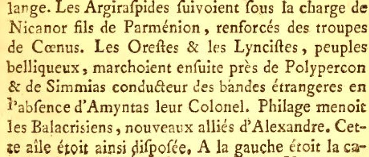 Във френско издание от 1772 г. (на латински и френски език) имаме също балакри, те са нови съюзници, а командирът им се казва Филаг (ил. 5 и 6). Така е и в английски издания. Ил. 5. Фрагмент от старо френско издание с текста на „Историята …” на Курций Руф[1] на латински език. [1] Histoire d’Alexandre Le Grand, par Quinte-Curce. Chez J. Barbou, A Paris, MDCCLXXII. p. 489.
