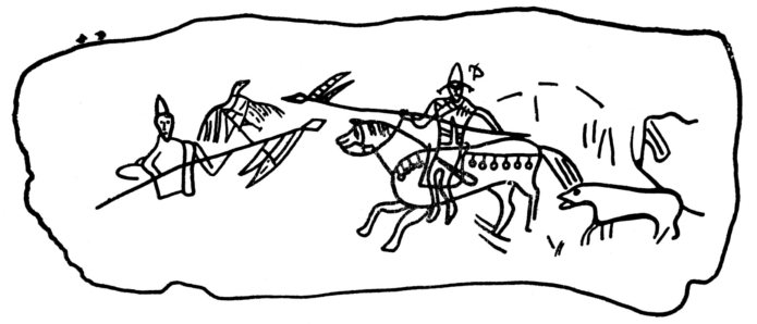 И аз това се чудя. Бях пускал преди някъде във форума една аналогия, но ето я пак. Прави впечатление, че същата атакуваща стойка - хванато с две ръце дълго копие без щит - откриваме и при източните катафракти, и в един български графит от времето на ПБЦ.
