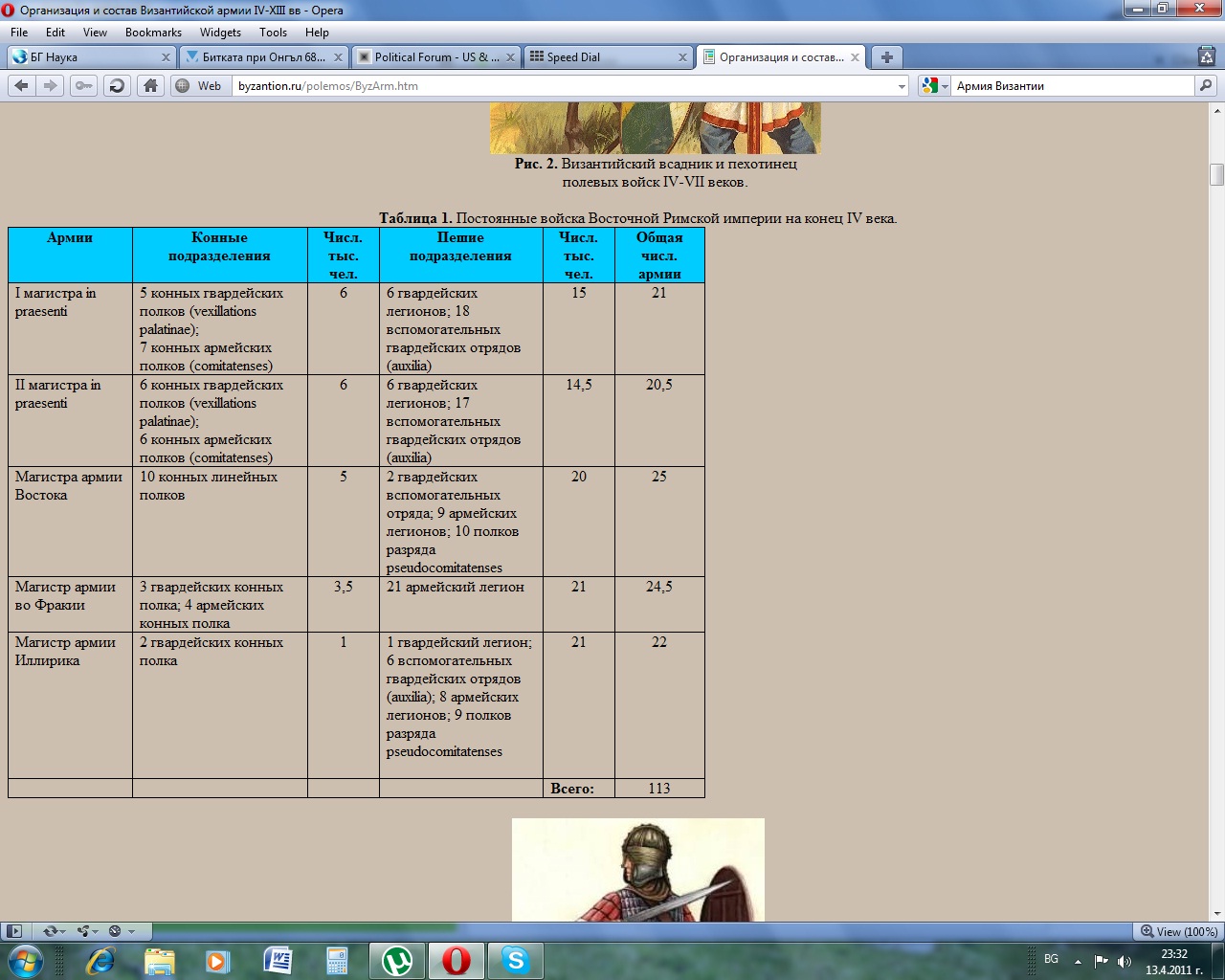 Мда. А тук: http://byzantion.ru/polemos/ByzArm.htm имаме таблица за постоянната византийска армия през 6-ти век.