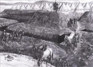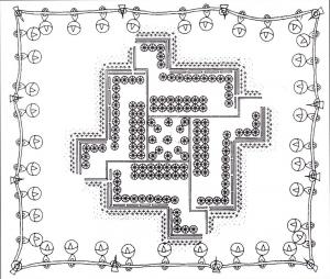 Ето какво представлява ромейски укрепен лагер. Палатката на военачалника е винаги в центъра!!! А в изворите се говори, че другите ромейски части отначало не разбрали веднага за нападението над тагмите, при които повече от разбираемо се намирал императорът и неговата свита.