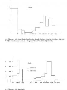 Но липсата се наблюдава не е само в този район и не само на територията на днешна България. Посевместно явление е. Няколко извадки направих, показващи учудващо съвпадение след 668 година (по вертикала са усреднен брой за 1 година монети). За Константинопол не е добър пример, защото е само от една локация.
