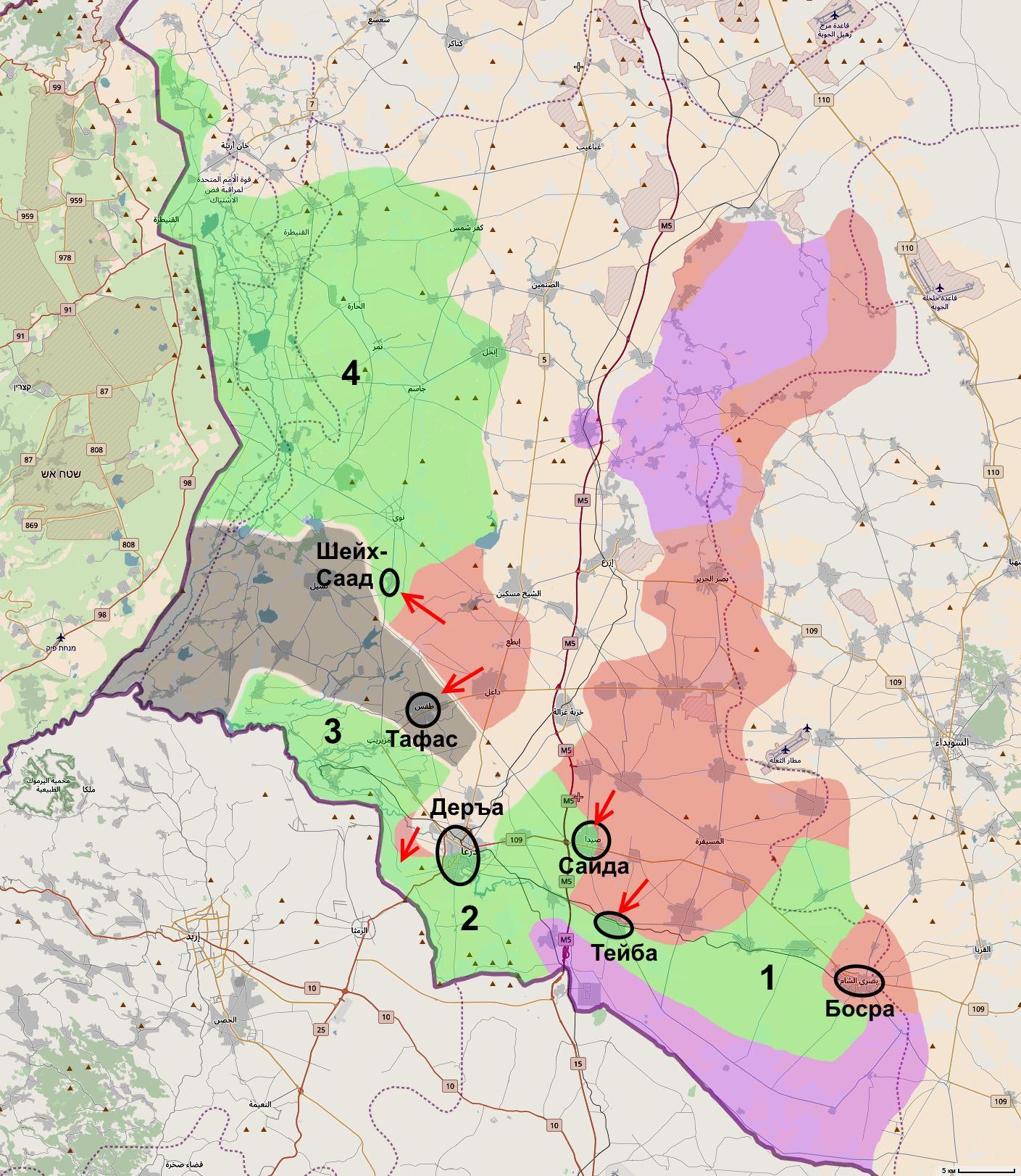 2 Дераа. Тук са са се съсредоточили най боеспособните части на опозицията, те държат фронта при Сайда, Тейба, Дераа и се опитват да спрат пълния колапс.