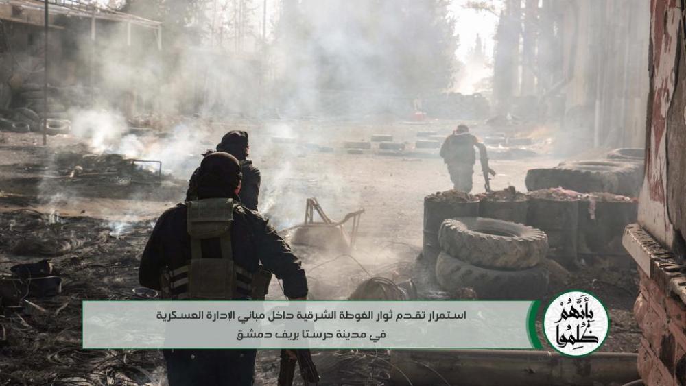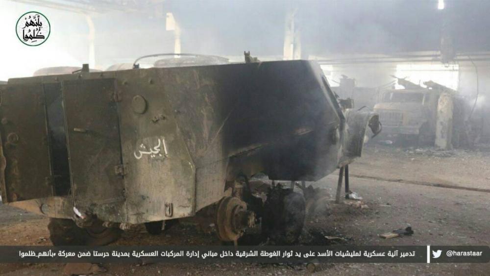 Сирийците след отразяването на контраатаките на Ахрар аш Шам в района на Хараста продължава да удържа военната база. Гута както и по рано се явява костелив орех и сирийците както и по рано продължават да опитват да намерят слабо място. Силните контраатаки на АШ съпроводени с тежки загуби в хора и техника показват, че тук никакъв напредък не е възможен. Сирийската авиация продължава да работи постоянно по АШ.