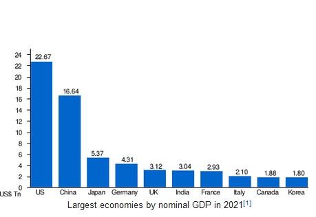 Тя е оценена малко повече от БВП на Италия и малко по-ниско от БВП на Франция