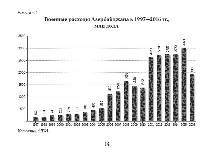 Това са военните разходи на Азербайджан - в периода 2001-2016 те са над 25 млрд. щатски долара; за същия период Армения е инвестирала в своята армия около 3 млрд. щатски долара, 8 пъти по-малко