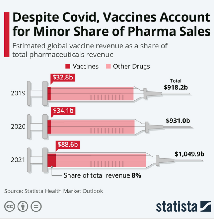 Всъщност лечението на един неваксиниран, боледуващ от ковид (дори и да не е хоспитализиран) поглъща много повече медицински консумативи, струващи много повече пари от една ваксина. Тъмните конспиративни сили са по-на далавера, ако въобще не произвеждат ваксини, за да имат повече потенциални клиенти за останалите медикаменти, които произвеждат и от които печелят много повече. 1 ваксина я продават на правителствата за 10 евро, а един дефибрилатор примерно струва хиляди.