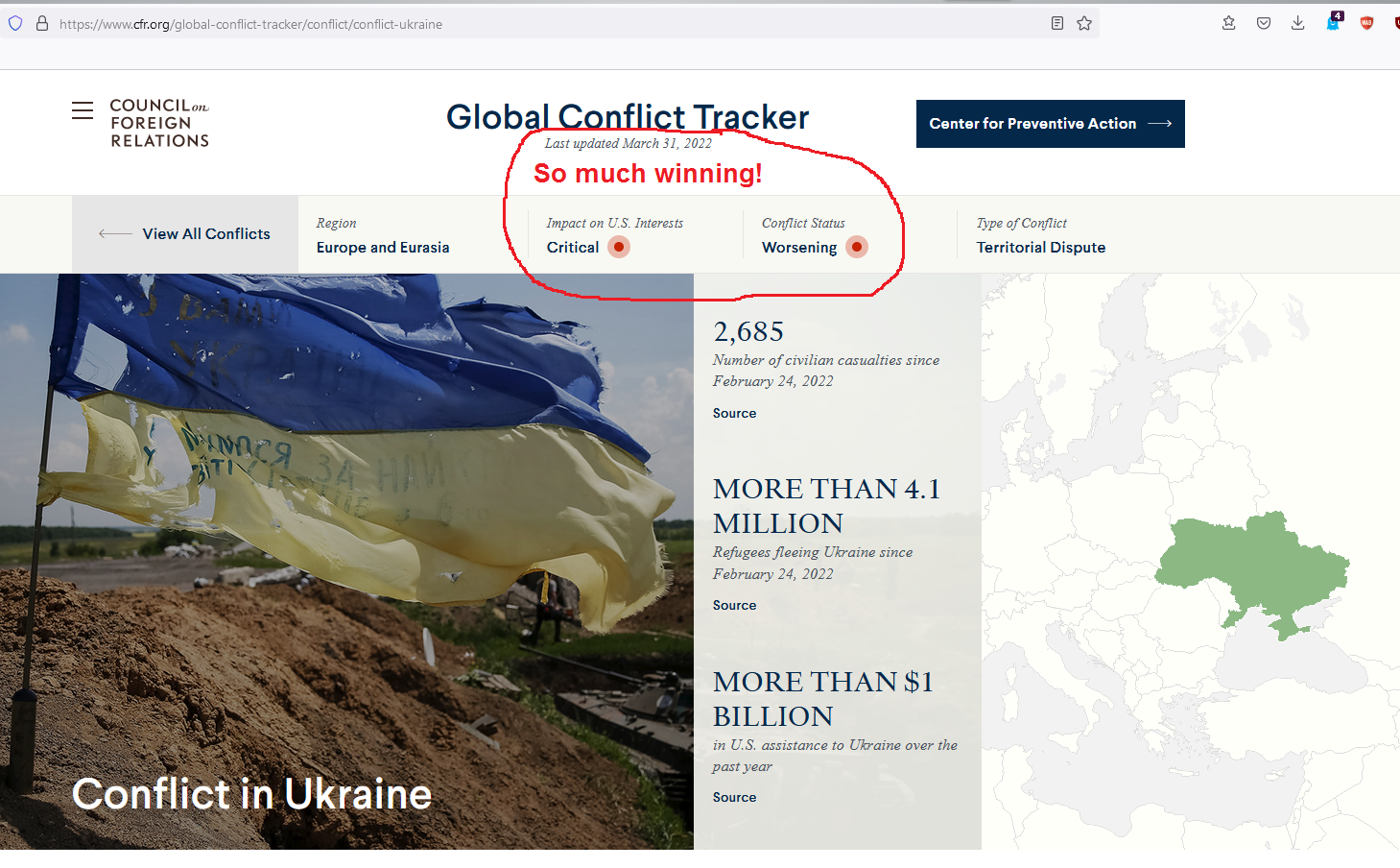 За сведение на русофобчетата като сармат и сканер, които постоянно ни дават украйнската пропаганда за много победи - кликнете на Украйна и вижте какво мисли CFR са състоянието там!!!