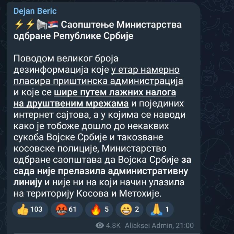 Русия смята, че конфликтът между Сърбия и Косово уж е започнал поради "външното влияние" на Европейския съюз и САЩ върху Прищина. Това се казва в изявление на представителя на Министерството на външните работи на Руската федерация Мария Захарова. „Лидерите на косоварите знаят, че сърбите няма да останат безучастни, когато става дума за директна атака срещу техните свободи, и те умишлено отиват да ескалират, за да стартират сценарий със сила. Разбира се, Белград също е в челните редици на атаката, която Западът иска допълнително да „неутрализира“ с ръцете на косовските албанци“, каза Захарова. Тя също така призова Прищина, за която се твърди, че е "подкрепена от ЕС и САЩ", да спре с "провокациите". Струва си да се отбележи, че конфликтът между Сърбия и Косово ескалира поради факта, че на 1 август влизат в сила нови разпоредби, според които косовските сърби с регистрационни номера, издадени от Сърбия, трябва да ги преиздават с косовски знаци. Освен това на гражданите на Сърбия на територията на частично признатата държава ще се издават временни документи, които ще заменят сръбските.