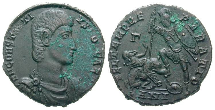 Втората монета е на император Констанций ІІ, а върху обратната страна епредставено същото изображение на Виртус. Тази монета е сечена в Константинопол.